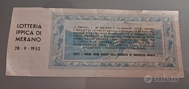 biglietto lotteria ippica di Merano - 1952