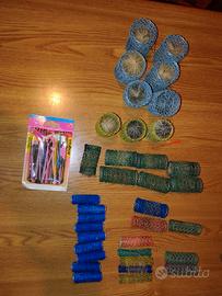 Set di bigodini per capelli di varie dimensioni e colori.