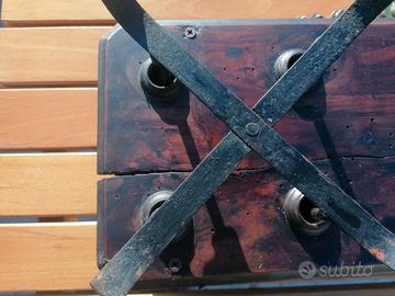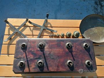 Bilancia a due pesi, probabilmente fine 800-inizi 900. Modello economico usato commercialmente, visti i segni di usura e le varie punzonature, tra cui ho notato un 09/10. Molto vissuta, con piccole manutenzioni artigianali fatte con l'unico scopo di ripristinare la funzionalità, tipo il vetro degli indicatori rifatto approssimativamente con taglio " a tenaglia". Va detto che a quei tempi il concetto di vintage proprio non esisteva. Soprattutto in certi ambienti "poveri" le cose si usavano e li finiva il loro scopo. Presenta una crepa nel ripiano superiore e diversi segni di tarlo, oltre a tracce di ruggine nei meccanismi interni. I piatti stessi non sono perfettamente circolari, tutt'altro. Insomma, di difetti ne ha, e giustamente visto che parliamo di una centenaria. Eppure ha livello visivo colpisce come poche. Si percepisce quasi la vita "vera" che ha sulle spalle. Personalmente ho solo effettuato un primo trattamento anti tarlo e dato una prima pulita generale. Ovviamente funziona, ma andrebbe messa a punto visto che "pende" leggermente. Come oggetto decorativo io invece la trovo bellissima una volta sistemata nell'ambiente giusto. Molto, molto più bella di tante bilance tutte "perfettine". Possibile ritiro a mano