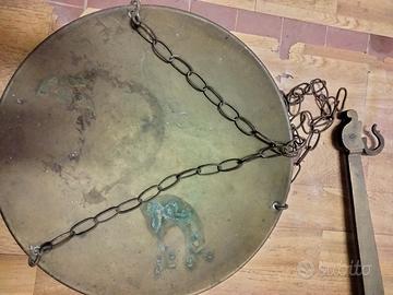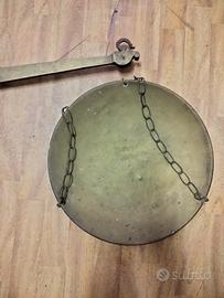 Bilancia a gruccia, antica stadera in ottime condizioni, lunghezza gruccia 85 cm, diametro dei piatti 40 cm.