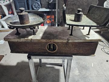 Vendo bellissima e autentica bilancia da banco risalente agli anni '20, perfetta per collezionisti o come esclusivo complemento d'arredo per cucine, negozi o loft in stile industrial/vintage. Caratteristiche principali: Materiali: Base in legno massiccio con piano superiore in pregiato marmo bianco. Piatti originali in metallo di diverse forme e coppia di pesi d'epoca inclusi. Sistema interno originale a vista (tramite l'oblò frontale), icona della precisione meccanica del secolo scorso. Questa è una splendida bilancia tecnica a due piatti (spesso chiamata bilancia a bilanciere o "tipo Beranger") risalente agli anni '20. È un pezzo che unisce l'estetica industriale dell'epoca alla nobiltà dei materiali classici.