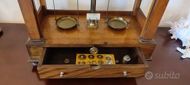 Antica bilancia da farmacia in buono stato , con set pesi di precisione. Vista la fragilità consegna solo a mano provincia di Como -Milano