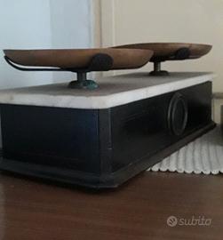 Bilancia antica 2 piatti ottone ,pesi, base il legno con piano in marmo