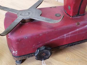 Nonostante i segni del tempo, l'oggetto conserva tutto il fascino del marchio più iconico del settore. Con la sua tipica smaltatura rossa e le linee decise, è perfetta come elemento d'arredo per locali, cucine in stile loft o come progetto di restauro per collezionisti appassionati.