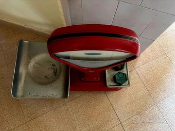 Vendo bilancia meccanica da banco d'epoca, rossa, due pesi originali inclusi. Portata 0/15 Kg Marca italiana Giuseppe Grasso (ditta genovese del 1954) Ideale per collezionisti, antiquariato, o arredamento vintage. In buono stato, funzionante, normali segni del tempo. Ritiro Quartu (zona Flumini) o Cagliari.