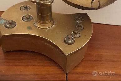 Bilancia di precisione portoghese in ottone brunito con sette pesi nella base