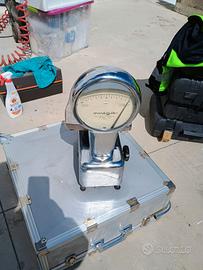 Propongo in vendita bilancia meccanica Omega, dotata di bolla integrata, piatto di pesatura e regolatore di grammi incorporato. Capacità massima: 1 kg.