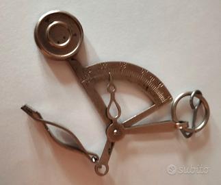 Elegante bilancia portatile per corrispondenza d’epoca, modello stadera, realizzata in metallo argentato.