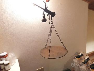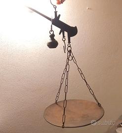 Antica stadera con regolare contrappeso e piatto in ottone diametro cm 32; consegna a mano