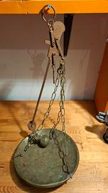 Bilancia Stadera da collezione in ferro e ottone. Piatto, catenelle e peso in ottone. Piatto da 24 cm ritiro a mano o spedisco.