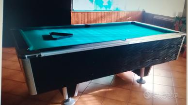 trattasi di biliardo 125 americana,con buche laterali e panno verde, con misure di 2 metri x 1 metro,comprensivo di palle piene e non ,un triangolo ,4 stecche, il biliardo è con gettoniera collocato fin poco tempo fa in alcuni locali a Trieste.