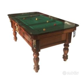 Biliardo Tavolo Carambola Inglese In legno pregiato con vetro in cristallo che funge da tavolo, Cestelli in corda. Oggetto da arredamento e Design Anno 1920 Made in England Rarità