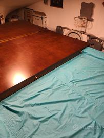 Vendo biliardo pool mod. Parigi versione etnica (panno speciale zebrato). Dimensioni campo da gioco 224x112 cm- Dimensioni esterne 260x145cm. Completo di lampadario, stecche, portastecche, segnapunti, palle, boccette e birilli. Copertura in legno per trasformarlo in tavolo. Trasporto, smontaggio e montaggio non incluso.