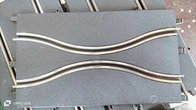 Numero 97 pezzi della pista polistil anni 70 così composti: 55 rettilineo standard A8 3 rettilineo x trasformatore e pulsanti 21 curva standar 60°piana A9 9 curva parabolica sopraelevata A16 2 rettilineo A26 contagiri meccanico 6 curva 30° A15 1 rettilineo A21 chicane Pulsanti, trasformatore 16v. e contatti striscianti. 1 auto