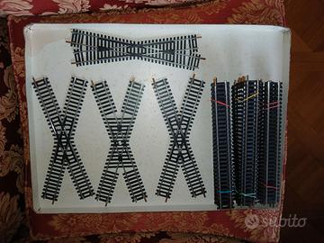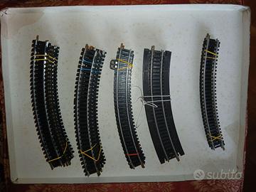 Rivarossi 9 binari curvi. Lima 4 incroci, 12 curvi corti, 9 curvi piccoli, 26 curvi di cui uno con presa corrente, 27 diritti, 3 scambi destri manuali, 3 scambi sinistri elettrici e 3 binari diritti piccoli per contatti. In alcuni mancano le scarpette di contatto facilmente reperibili. Formula visto e piaciuto. Possibile consegna a mano a Roma.