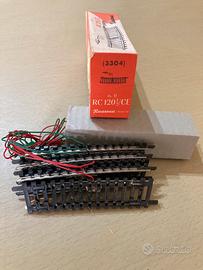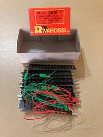 Binari Rivarossi vendibili singolarmente a scatola o a pezzo:3105 binario dritto 10 cm con contatto su una rotaia,3126 binario dritto 20 cm di alimentazione con cavetti,3303 mezzo binario curvo con contatto su rotaia interna,3304 mezzo binario curvo con contatto su rotaia esterna,43203 binario curvo rr con contatto,scrivetemi tranquillamente per informazioni,da collezione privata.