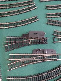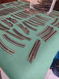 Vendo stock 118 pezzi di binari Rivadissi e Lima. Presenza di alcune piccole rotture della plastica esterna del binario su alcuni binari (come si vede nella foto come esempio).