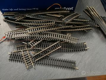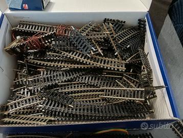 moltissimi binari per plastico, di marche diverse ( Lima , rivarossi, ecc,) e alcuni scambi elettrici.