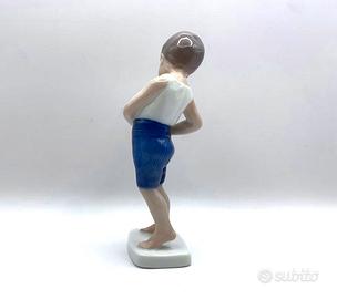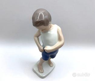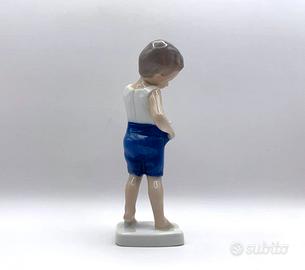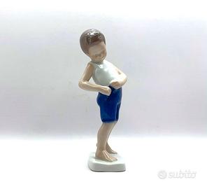 Statuina (fuori produzione) della famosa manifattura di porcellane Danesi di Copenaghen FIGURA : Bimbo che si allaccia i pantaloni "Boy Buttoning Trousers" N. 1759 *Statua realizzata dall'artista Michaela Ahlmann MATERIALE: Porcellana lucida dipinta a mano, con tinte sfumate DIMENSIONE: Altezza 15 cm. COLORE: Base bianca con tinte sfumate in Beige Rosa Blu e Marrone MARCA: B&G BING & GRONDAHL ( Royal Copenhagen ) Made in Denmark / Danimarca STATO: perfetto, pari al NUOVO (i riflessi più chiari o scuri, sono l'effetto del flash sulla Statuetta )