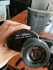 Binocolo Antares 10x50mm super wide angle 8°. Dotato di cinturino e custodia in pelle.
