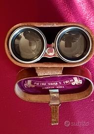 Binocolo "Pietro Sbisa e figlio. Firenze-Roma" con custodia. Funzionante. Con evidenti segni di usura nella custodia e sull'oggetto Misure 12 x 14 x 6