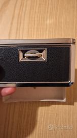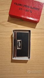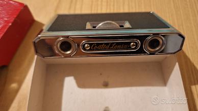 Elegante binocolo da teatro d’epoca, compatto e leggero, ideale per opere, concerti ed eventi al chiuso. Probabilmente prodotto in Giappone tra gli anni '60 e '70. Accessorio raffinato in perfetto stile Mid-Century, pratico da portare in borsa e molto ricercato dai collezionisti di oggetti vintage. Folding Opera Glasses with Box, in metallo e cuoio nero, con apposita scatola in cartone. Caratteristiche: 2.5x25 (ingrandimento x diametro lenti); lenti trattate (coated Lens). Misure: 11x6.5x2cm.