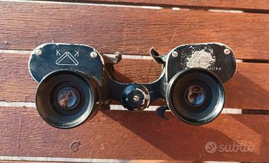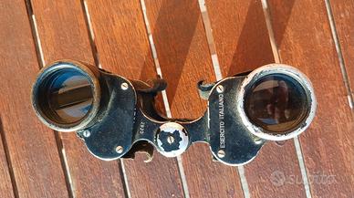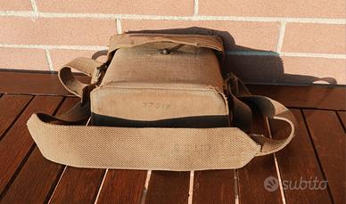 Binocolo dell'Esercito Italiano da rivedere con custodia inglese in canapa marcata 1940 piccoli segni da indossamento e utilizzo tracolla e bottone chiusura ok