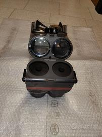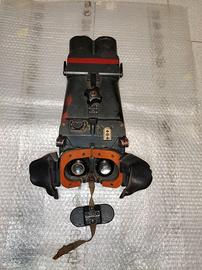 Binocolo contraerea tedesca FLAK, super ottica Carl Zeiss., marcato "blc Rm.- F.12x60 für 4m R (H) 88”, con rara maschera di gomma color aragosta (perfetta) ruotabile verso l'alto per osservazione con o senza elmetto, terminale parapioggia con farfalla a protezione degli obiettivi, colore blau-grau originale Luftwaffe.