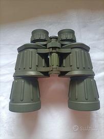 Binocolo 10x50 rivestito in gomma, con lenti prismatiche mai usato in confezione originale. Colore verde militare.