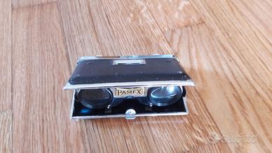 Binocolo vintage (da teatro ma non solo) marca Pamex in metallo con chiusura a scatto; l’oggetto è ben tenuto, la meccanica per la movimentazione delle lenti retrattili è perfettamente funzionante. Molto bello come oggetto di arredamento o come regalo inconsueto e alternativo.