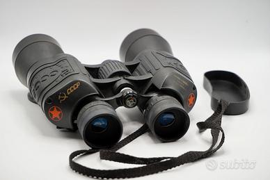 Binocolo nero di chiara ispirazione sovietica, caratterizzato dalle scritte "CCCP" e dal classico logo con stella rossa, che gli conferiscono un look vintage e militare molto particolare.