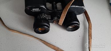 Binocolo vintage con tracolla in pelle nera. Risalente inizi anni 1990. Presumibilmente origine Est Europa Marca Revue (8x30 weitwinkel 150 m / 1000 m Perfettamente funzionante ma presenta delle parti mancanti di vernice causa anni.