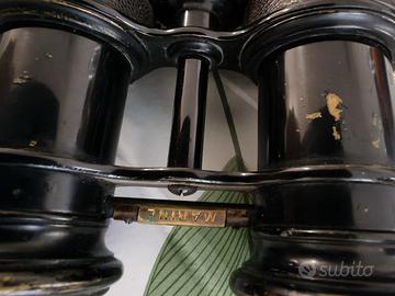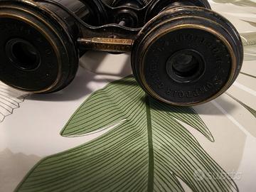 binocolo d'epoca, probabilmente un modello militare o navale, caratterizzato da: