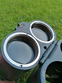 (n°57) Binocolo 12x60 60° BLC ( C.Zeiss crittografato), colore sabbia , montato con un set di 3 pezzi identici, sui telemetri R40 stereoscopici con finitura e colori diversi , è presente il mirino , la distanza interpupillare si ottiene muovendo una leva sotto l' oculare sinistro che funziona correttamente . Manopola per variare i filtri in due tonalità - La maschera di gomma colore " aragosta " molto rara da trovare , può essere ruotata verso l'alto per guardare , con o senza elmetto. Nel tubo parapioggia esiste una farfalla per proteggere gli obiettivi. La visione è limpida e collimata. --- Controlla pure altri "Annunci online"