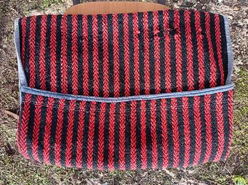 Vendo bisaccia sarda di una località sconosciuta. Trama spigata rossa e nera in lana. Misure: larghezza 52 cm, altezza 1,40 m. Condizioni generali buone, acquisto dopo visione ad Osilo (SS)