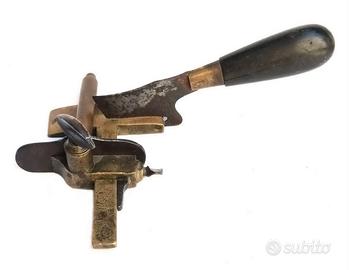 Attrezzo da Sellaio, Pellettiere del 1800 marcato Blanchard Paris, serviva per Tagliare Cinture di Cuoio, Vacchetta o altre Pelli. Attrezzo Storico in Ottone, Acciaio e Legno, riporta il Misuratore in Centimetri e Millimetri per regolare la misura della larghezza da Tagliare. Allentando la Vite si mette a misura bene, e stringendola si blocca per ereguire il taglio. Per Info Tel. Voce 333 – 4402586. Attrezzo Vissuto do altri Tempi quando veramente gli artigianii realizzavano tutto a mano. Stupendo esposto in Vetrine, Negozi o Collezioni. Cedo con Formula Visto e Piaciuto.