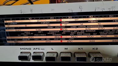IMPIANTO HI FI Blaupunkt con casse Blaupunkt Hi-Fi Box LAB 208 : è un diffusore acustico vintage prodotto in Germania tra il 1973 e il 1975. Si distingue per il suo design ultra-piatto, pensato per il posizionamento a scaffale o direttamente a parete. Specifiche Tecniche Tipo di Sistema: Diffusore a 2 vie, cassa chiusa (sealed box). Potenza: 20 W nominali / 25 W musicali. Impedenza Nominale: 4 Ohm. Risposta in Frequenza: 40 Hz – 20.000 Hz. Frequenza di Crossover: 2.000 Hz. Configurazione Altoparlanti (Chassis): Basse frequenze (Woofer): 2 coni da 130 mm di diametro. Medio-alte frequenze (Tweeter): 1 cono ovale da 70 x 130 mm. Molto raro . Hi fi DIN 45 500 ( Queste norme “codificate con il numero DIN 45 500 (DIN deriva da Deutsche Industrie Normen e cioè norme dell’industria tedesca) stabiliscono inequivocabilmente quale apparecchio può essere definito Alta Fedeltà (high Fidelity): apparecchi con determinati valori minimi ai quali debbono attenersi tutti i produttori, qualora desiderino utilizzare la definizione DIN 45 500. UN USCITA DELLE CASSE NON FUNZIONA ( CREDO CI SIA SEMPLICEMENTE UN CONDENSATORE DA CAMBIARE) Prezzo non trattabile. No scambi