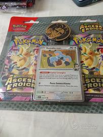 Pokémon ascesa eroica megaaevoluzione contiene 1 moneta Pokémon volto di Ubaldo 2 bustine Pokemon espansione con 10 carte 1 abilità Carica letargica