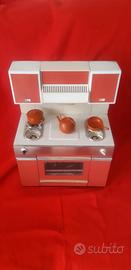 2 bellissime cucina giocattolo in latta della ditta bolognese A.M.B. Marchesini; è il modello Monique in ottime condizioni di conservazione. una di colore rosso e l'altra giallo. Le misure espresse in cm sono 38 x 28 x 15. Peso 1620 gr . Dotata di qualche accessorio. Appartiene alla categoria dei giocattoli vintage da collezione.