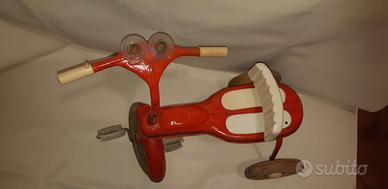 Bellissimo triciclo giocattolo anni 60 in ferro della nota Giordani di Bologna. E' un ottimo conservato con qualche piccolo ed ininfluente segno del tempo. E' tra gli oggetti vintage giocattolo, molto apprezzati e ricercati dagli appassionati collezionisti. Le misure di ingombro massimo in cm. sono altezza 56, lunghezza 62 larghezza 38. Peso 4 Kg.