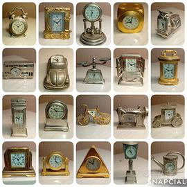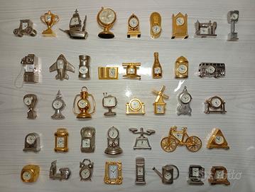 Vendo: collezione di 40 Orologi Decorativi francesi a quarzo, marca LE TEMPS, sono orologi miniatura a forma di oggetti, tipo: auto , telefono, torre , vespa, bici, torre, macchina da cucire, coppa, libro, scarpa, nave,