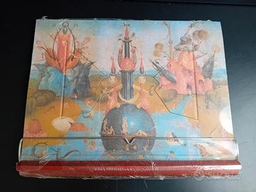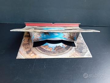 Blocco di 50 LEGGII Pieghevoli Hardware/book, cm. 29x23, mensola d'appoggio in legno e fermalibro in metallo. Il leggio nasce da una ricerca sull'uso del libro. In particolare, l'angolo d'inclinazione del piano consente una lettura ergonomica. Disponibile in 4 illustrazioni diverse: Mantegna loculo della Camera degli sposi; Van Gogh particolare del Campo di grano con corvi; Bruegel La torre di babele; Bosch particolare del Giardino delle delizie.