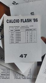 Vendo lotto di circa 36 figurine originali della rara collezione "Calcio Flash '86" (stagione 1985/86), prodotte dalle Edizioni Flash (Euroflash). Tra le figurine presenti spiccano: Michel Platini (Juventus) - Pezzo pregiato della collezione Marco Tardelli (Inter) - Gabriele Oriali e Daniel Passarella (Fiorentina) Figurine di squadre di Serie B e Serie C (es. Taranto, Pavia). Vari giocatori di Serie A (Sampdoria, Verona, Como, ecc.). Le figurine sono in buone condizioni. I bordi sono ben conservati e i colori ancora vivi. Ritiro a mano ad Arezzo.