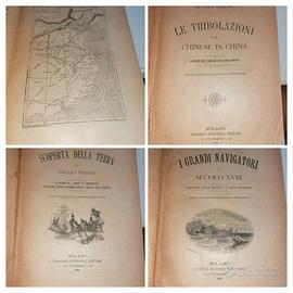 Salve, vendo in blocco, libri d’epoca tutti in buono stato tranne la copertine di uno, come indicato in descrizione al PREZZO AFFARE di soli 80 euro!!!! I seguenti titoli: 3 Volumi MEMORIE MONDADORI 1930 1931 Primo secondo e Quarto volume ,Ottimo stato -Giulio Verne LE TRIBOLAZIONE D’UN CHINESE IN CHINA illustrato con 50 incisioni e una carta geografica Milano Edoardo Sonzogno Editore 1894 -Giulio Verne SCOPERTA DELLA TERRA illustrato con 68 incisioni Milano Edoardo Sonzogno Editore 1895 -Giulio Verne I GRANDI NAVIGATORI DEL SECOLO XVIII illustrato con 104 incisioni E 18 cartine geografiche Milano Edoardo Sonzogno Editore 1895 -Verne KERABAN L’OSTINATO Milano Edoardo Sonzogno Editore 1895,Con copertina in discreto stato -Victor Hugo I MISERABILI ricco di illustrazioni societa’ editoriale milanese primi 900 -Victor Hugo I LAVORATORI DEL MARE ricco di illustrazioni societa’ editoriale milanese primi 900 -Victor Hugo L’UOMO CHE RIDE ricco di illustrazioni G. Nerbini Editori Firenze primi 900 -Sven Hedin AVVENTURE NEL TIBET Società editrice laziale con 137 illustrazione primi 900 Ritiro Napoli vomero,oppure spedisco. PREZZO REGALO, TUTTO COME DESCRITTO A SOLI 80 EURO!!!!!!