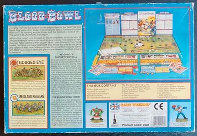 Contenuto: 1 Regolamento/Playbook, 1 Tabellone, 24 Miniature Dipinte (12 per Fazione), 4 Miniature Pallone da Football NON DIPINTE, 15 Fogli Match Record, 2 Fogli Riassuntivi delle Regole, 2 Carte Squadra, 4 Star-Player Card, 37 Segnalini, 1 Scattler Template, 1 Throw-In Template, 1 Righello, 2 Dadi da 6, 1 Dado da 8 e 3 Dadi Speciali