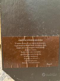 Opera prodotta da Brumal in argento 925, disegnata da Malizia, dipinta a mano e montata su legno pregiato con cornice firmata Valentino. Si tratta della scena "Bocca della Verità" e include il certificato di garanzia originale.