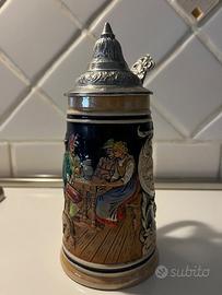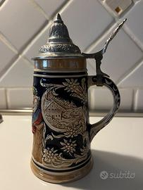Vendo Boccale da birra in ceramica, vintage con coperchio in peltro lavorato. H=13 cm senza coperchio (18 cm con coperchio). Oggetto da collezione. Visibile e ritirabile a Guastalla.