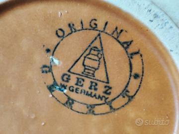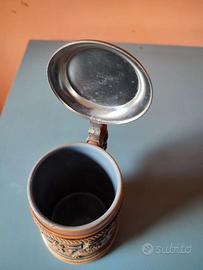 Boccale birra vintage in ceramica con coperchio in metallo, Gerz West Germany, in ottime condizioni. Pesante ed ottimamente realizzato, ha una capacità di 0,5 litri. Sulla superficie sono rappresentati dei cavalieri in atto di compiere una sfida. Raro da trovare.