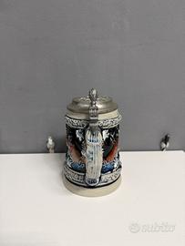 Vendo boccale da birra in ceramica smaltata con decorazioni in rilievo.