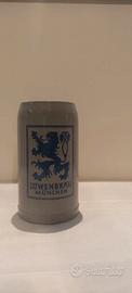 Boccale da birra in ceramica della Löwenbräu München noto come "beer stein" tedesco, con il logo e la scritta "Löwenbräu München". La Löwenbräu è una storica birreria di Monaco di Baviera, in Germania, fondata nel 1383.